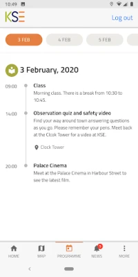 KSE hoolib teie ajast, seetõttu teavitab rakendus teid koheselt igasugustest muudatustest teie programmis. Et teie saabumine Broadstairsi oleks stressivaba, tutvuge juba enne kohalejõudmist linna ja oma eelseisva programmiga, sealhulgas majutuse asukohaga. Rakendusele ligipääsuks on vaja teie grupi broneeringu numbrit ja KSE tudengi ID-numbrit. Ootame teid Broadstairsi!