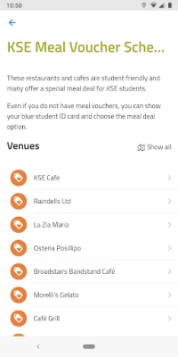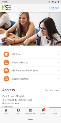 KSE rakendusest leiate täpse ülevaate oma õppetundidest ja planeeritud tegevustest, tagades, et olete alati kursis. Teie igapäevaelu Broadstairsis muudab lihtsamaks KSE Üliõpilaskohviku menüü koos päevapakkumiste ja soodsate söögikohtadega. Lisaks aitab rakendus teil leida kõik olulised punktid: olgu need siis KSE vautšerite vastuvõtjad lõunasöögiks, teie tegevuste toimumiskohad või koolihooned, kus tunnid toimuvad. Siit leiate ka põhjalikku teavet kooli kohta ja nimekirja olulistest kontaktidest, keda võite vajada. Broadstairsi linnakaart koos marsruudi planeerimise funktsiooniga tagab, et te ei eksi kunagi ära, ja reaalajas ilmaprognoos aitab teil alati õigesti riietuda.