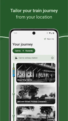Kogege üht Austraalia ikoonilisemat reisielamust nagu kunagi varem. Kuranda Scenic Railway rakendus on teie lahutamatu kaaslane teekonnal läbi iidse troopilise vihmametsa, mööda kaskaadidest ja otse Din Din (Barron Gorge) rahvuspargi südamesse. See rakendus on loodud pakkuma palju rikkalikumat ja kaasahaaravamat seiklust, äratades elu hiilgava ajalooga raudteel, mis lookleb läbi mägise maastiku. Teie taskus asuv heli- ja pildikommentaar avab aknad 1886. aastal alguse saanud inseneriteaduse ime ja selle ehitamise lugudesse.